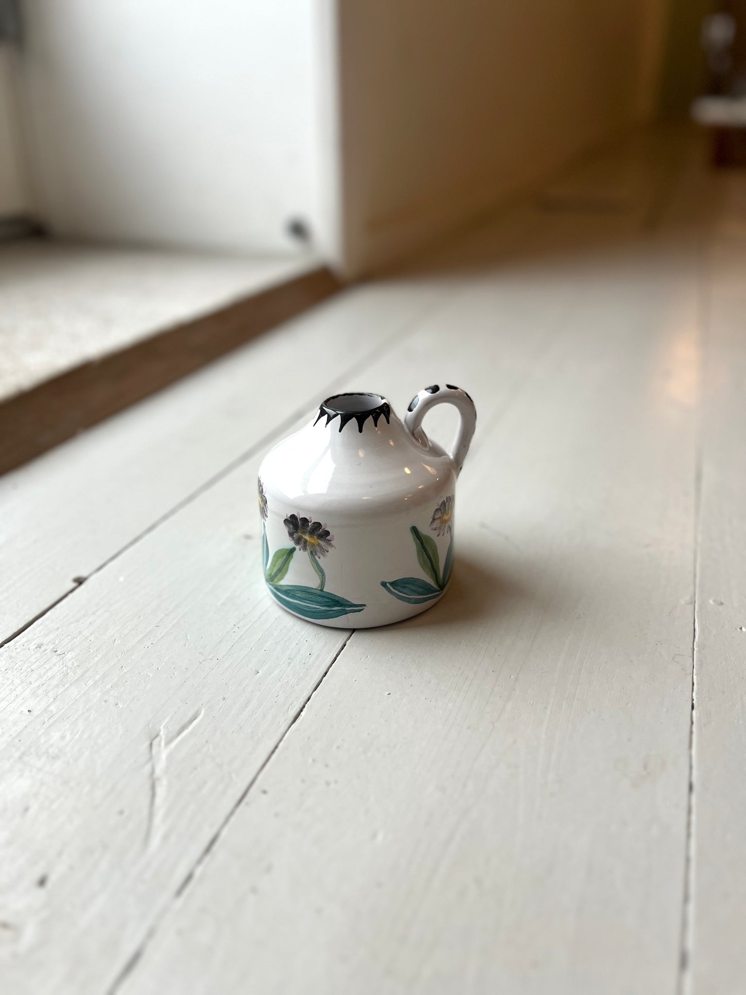 Sød lille vase med blomstermotiv.